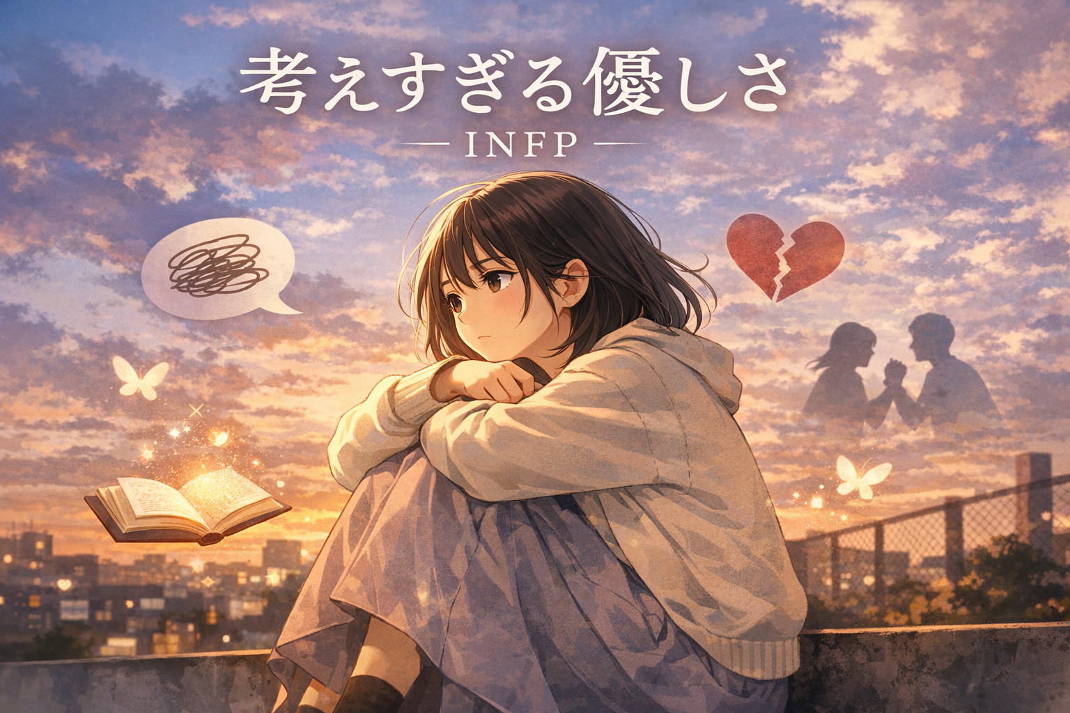 INFPは声高に自己主張せず、即断即決もしない。その姿は時に弱く見えるかもしれないが、内側には揺るがない価値観と豊かな世界観を持っている。考えすぎる優しさも、仲介者として調和を選ぶ姿勢も、すべては人に誠実であろうとする心の表れだ。自分の感情を整理し、必要な距離を取り、好きなものにエネルギーを注げたとき、INFPは静かに、しかし確実に自分らしく輝き始める。